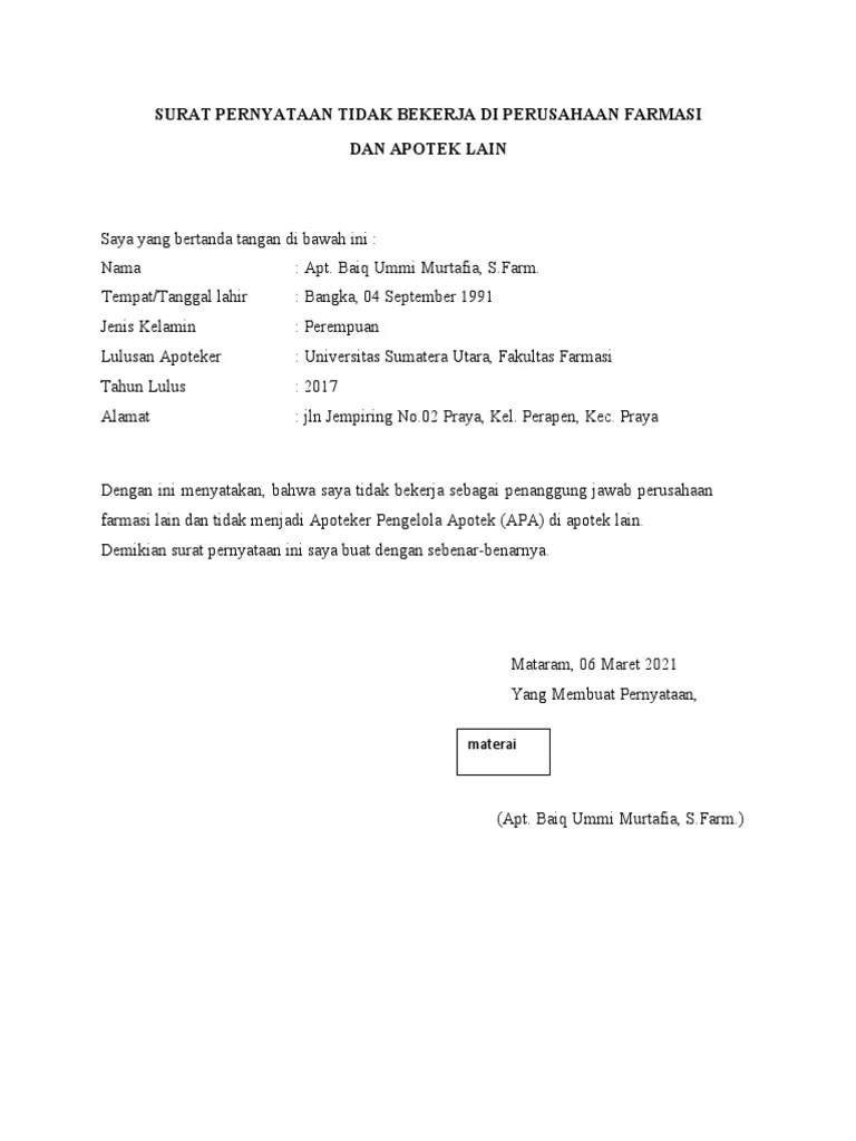 Simak artikel menarik lainnya di lokerbaliinfo surat tidak bekerja. Dikeluarkan lengkap berisi data diri, pernyataan bahwa tidak bekerja, berisi materai dan tanda tangan.